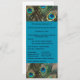 Die künstlerische Touch zu diesem Foto von Pfauenfedern macht ein phantastisches Hochzeitsprogramm für Ihre Pfauenhochzeit. Die lebendigen Farben der Federn machen ein bemerkenswertes Design für Ihre individuellen Pfau-Hochzeiten. Der blaue Akzent ist phantastisch.