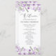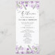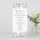 Dieses elegante Brautparty-Programm aus unserer Lavendel Pressed Floral-Kollektion bietet lila Aquarellflorale mit zarten grünen Weinreben, gepaart mit einem modernen Script-Schriftart. Ideal für jede Jahreszeit. Um vorzeitige Änderungen vorzunehmen, wählen Sie Personalisieren -> Bearbeiten mit dem Entwurfstool.