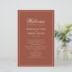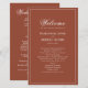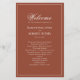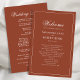 Genießen Sie Ihren besonderen Tag mit diesen eleganten Hochzeitsfeierprogrammen mit einem rostbordeauxfarbenen Thema und klassischen Kalligrafiebeschriften. Dieses doppelseitige Single-Layout bietet einen vereinfachenden, raffinierten Stil, der die Reihenfolge Ihrer Dienstleistung und die Liste der Brautparty schön anzeigt. Die stilvolle, trendige Typografie ergänzt die formale, traditionelle Ästhetik, während das elegante Design eine raffinierte Touch verleiht. Perfekt für eine leicht schicke und zeitlose Hochzeit