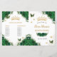 Personalisieren Sie diese eleganten smaragdgrünen Blumen Quinceañera / Sweet 16 Geburtstag Programm einfach und schnell. Klicken Sie einfach auf die Schaltfläche "Weitere Einstellungen", um die Texte zu bearbeiten, Schriftart und Schriftart zu ändern. Alle Texte können bearbeitet werden. Personalisieren Sie es in Ihrer eigenen Sprache! Spanisch, Englisch usw. Die Blume sind in Aquarellgrün gehalten, die Schmetterlinge sind grün und goldgelb. Matching-Elemente im Speicher verfügbar. c) Somerset Fine Paperie