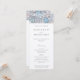 Erleben Sie ein wunderschön gestaltetes Hochzeitsprogramm, das Funktionalität mit klassischer Eleganz verbindet. Unser individualisierbares Programm zeichnet sich durch ein zartes Blumenmotiv aus, dessen Lilien in sanften Farbtönen von Blüte, Creme und Taupe dargestellt sind und durch sanfte Splash von Cerulean und Taubengrau unterstrichen werden. Die Vorderseite des Programms stellt die Hochzeitsfeier vor, während die Rückseite die Reihenfolge der Feierlichkeiten Kontur. Beide Seiten sind durch das Vintage Blumendesign gerahmt, das einen zusammenhängenden und charmanten Leitfaden für Ihren besonderen Tag schafft.