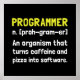 Entwickler, Ingenieure, Nerd und Geeks wissen, dass Programmierer Organismen sind, die Pizza und Koffein in Software verwandeln. Karo dieses lustige Design auf T-Shirts, Shirts, Tasse, Hüllen, Geschenke und Bekleidung.