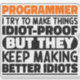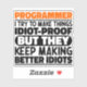 Funny Programmierer Redewendungen "Programmierer Ich versuche, Dinge zu machen idiot Beweis, aber sie Behielt, bessere Idioten zu machen". Nehmen Sie sich dieses lustige Programmer-Design als lustige Geschenke für eine phantastische Mutter, einen Vater oder einen Freund.