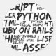 Modische und schicke Typografie mit Text mit Programmiersprachen (HTML, Lisp, CSS, PHP, Pascal, JavaScript, Delphi, Assembler, Python). Modernes und trendiges Geschenk, perfekt für den Programmierer in Ihrem Leben.