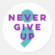 Spread Suizid Prävention Bewusstsein mit diesem Semikolon nie geben Design Aufkleber in lila und türkis (Suizid Prävention Bewusstsein Farben) mit weißem Hintergrund.