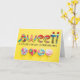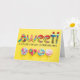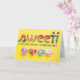 Colorful Gratulations card featuring the message: "Sweet! I heard you got a promotion!" with letters in the word, "sweet" made from rainbow candy illustration. Bright yellow background with brightly-colored, swirly lollipops background. Inside can customized to fit your needs.