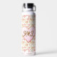 A sweet and romantic way to ask a girl or boy to prom! Will you go to prom with me water bottle.. Background is pink and gold hearts.