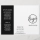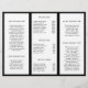 Eine handgefertigte, schwarz-weiße Triftebroschüre mit Ihrem Logo auf der Vorderseite. Die Rückseite hat Ihre Kontaktinformationen und das Innenfaltfeld hat zwei Header und Textfelder. Die Innenseite verfügt über mehrere Vorlagen für Informationen über Ihr Unternehmen auf den äußeren Tafeln und eine Preisliste im mittleren Bereich. Ein einfaches und schlichtes Design, das immer noch so beruflich ist. Dieses einfache und moderne Design ist ideal für alle Arten von Unternehmen, groß und klein. TIPP ENTWICKLUNG: Sie können Text und Hintergrund in jede gewünschte Farbe ändern, indem Sie auf den Button "Anpassen" klicken.