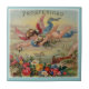 Ein altes Bild eines Engels fliegen und Blume über eine Szene verstreuen, die einen Zug, ein Schiff und Blume umfasst. Das spanische Wort für Wohlstand (Wohlstand) ist oben geschrieben