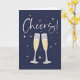 Chic Champagnerbrille mit dem Wort Cheers wie sie toast. Das Innere liest sich, wünschen Ihnen ein fantastisches Jahr voraus, Happy New Year! Sie können den Text auch bearbeiten, um ihn für eine Hochzeit oder andere Feierlichkeiten zu verwenden.