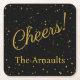 Feiern Sie stilvoll mit diesen Untersetzer aus schwarzem Papier mit der eleganten Goldschrift "Cheers!" Typografie und einem subtilen Sternenhimmel. Personalisiert mit Ihrem Familiennamen in einem klassischen Serif-Schriftart, fügen diese einfachen, aber modernen Untersetzer jedem Silvesterfest, jedem Party oder einem Meilenstein eine Touch der Eleganz hinzu. Ideal zum Schutz von Oberflächen und zum Eindrücken der Gäste.