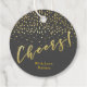 NewParkLane - Elegante personalisierte Gefälligkeitstags, mit glamourösen Imitaten goldenen Konfetti-Glitzern, vor fast schwarzem Hintergrund, und Cheers! in einem eleganten, Imitat Gold, Schriftzeichen in einem Kreis. Ein elegantes Design für Hochzeiten, Geburtstage oder andere festliche Anlässe. Einfache Anpassung in Zazzle mit eigenem Text für ein personalisiertes Design. Die Hintergrundfarbe kann in eine beliebige Farbe geändert werden. Auch alle Textstile, Farben, Größen können an Ihre Bedürfnisse angepasst werden. Karo dieser Auflistung für passende Elemente oder andere Anführungszeichen. Haben Sie spezielle persönliche Designwünsche? Nehmen Sie Kontakt mit mir auf.
