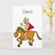 Lächerlicher Cartoon mit dünndem Haar, dicker Bauch und "Superman-Kap" mit großen Martini (gefüllt mit Oliven), Reiten auf einem Pferd! Außen: "Cheers" und innen