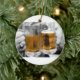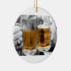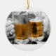 Foto von zwei Tasse Bier, die gegeneinander gehalten werden. Bier in Tasse eingefärbt; verbleibendes Foto ist schwarz-weiß. Im runden Ornament gezeigt; andere Stile verfügbar. Hintergrundfarbe Ihrer Wahl. Personalisierbar.