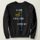 Stilvolles Prostatakrebs-Bewusstsein STOP APATHY Unisex Sweatshirt mit CUSTOMIZABLE TEXT, speziell zur Sensibilisierung für Prostatakrebs entwickelt. Der Wortlaut liest STOP FOOLISH APATHY in einem Kreuzworträtformat mit den Buchstaben PSA markiert in Kästchen. Der KUNDENBARE Text lautet PSA IGNORANCE ISN'T BLISS. Dies kann mit Ihrer eigenen kurzen Bewusstseinsbotschaft oder mit Ihrem Namen oder Firmennamen personalisiert werden. Spread diese wichtige Nachricht - und tun Sie es im Stil.
