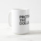 Minimal message, maximum meaning. The "protect the dolls." mug combines a clean, modern design with a quietly defiant statement. Whether it’s about pop culture, politics, or personal boundaries—this is for those who know that not everything cute is harmless, and not everything harmless is weak.