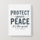 A distressed, vintage-style typographic poster design on a neutral light gray background. The text features a powerful message focused on mental well-being: "PROTECT your PEACE it's the quiet THAT HEALS." The design uses contrasting fonts—heavy, bold serifs for emphasis and elegant script for the secondary message, creating a strong, mindful aesthetic suitable for wall art or apparel.