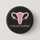 Ein Pinback-Button-Design mit einer Nachricht an den Obersten Gerichtshof der Vereinigten Staaten und die Umdrehung von Roe v. Wade. Rosa Uterusgrafik mit "f*ck off SCOTUS"-Text