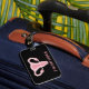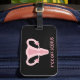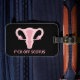Ein Gepäckanhänger mit einer Nachricht an den Obersten Gerichtshof der Vereinigten Staaten und dem Umstürzen von Roe v. Wade. Rosa Uterusgrafik mit "f*ck off SCOTUS"-Text