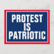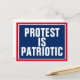 Protest is patriotic and a basic first amendment right. Design Beschreibung: As shown, white text on blue rechteck. Red Background. Text: Protest is patriotic.