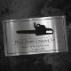 Metal Logging Tree Trimming Saw Service Business Card. Eine Schwarze Power Säge und ein Ort, an dem Sie sie mit Ihrem eigenen Namen und Informationen personalisieren können.
