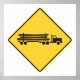 Ein Straßenschild, das anzeigt, dass es Holzlastwagen gibt. Dieses Design sieht auf diesem Poster wirklich effektiv aus