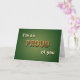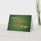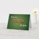 Die Worte, auf die ich stolz bin, mit dem Wort Proud in Gold vor einem grünen Hintergrund. Das Innere hat einen anpassbaren Text, der Glückwunsch sagt, und viel Glück in Ihren zukünftigen Bemühungen.