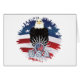 Stolz amerikanischer Adler ist Set vor den US Flagge der amerikanischen Fahne mit silberfarbenem US-Text. Das ist ein patriotisches Design, auf das Sie stolz sein können.