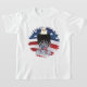 Stolz amerikanischer Adler ist Set vor den US Flagge der amerikanischen Fahne mit silberfarbenem US-Text. Das ist ein patriotisches Design, auf das Sie stolz sein können.