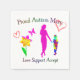 Wunderschöne Mutter und ihr Kind mit Autismus-Rätsel, die zusammen von Herzen, Blume und Schmetterlingen umgeben sind. Einzigartiges Autismus-Bewusstsein-Design zur Unterstützung einer Proud-Autismus-Mama.