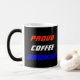 Eine Morphing-Tasse mit Adler-Design und den roten, weißen und blauen Worten, die "Proud Coffee Drinker" sagen.