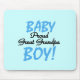 Stolz Großvater eines Baby Boy T - Shirt, Tasse, Karten, Aufkleber, Totentaschen, Hoodies, und andere Urgroßvater Bekleidung und Geschenke mit blauem und schwarzem Text.