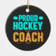 Hockeycoach-Ornament mit Aqua-Blau und Gold-Text liest Proud Hockey Coach.