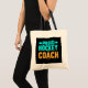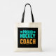Hockey Coach Tote Tasche mit aqua blau und Gold Text liest Proud Hockey Coach.