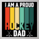 Das Stolz Hockey Vater Poster ist in den Farben Grün, Weiß, Gelb und Rostorange auf schwarzem Hintergrund mit weißem Text, der lautet I Am Proud Hockey Vater!