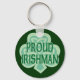 Grosses, hellgrünes keltisches Knoten Kleeblatt und Proud Irishman in dunkelgrünem Text.