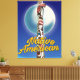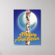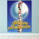 Stolz Indianer, Totem Pol und Vollmond in der Nacht.