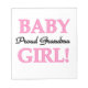 Stolze Oma eines Baby Girl Sake Boxen, Fliesen, Ziergegenstände, Notizbücher, Tasse, Karten, Aufkleber, Totbeutel, Magnete, Schlüsselanhänger und andere stolze Oma Kleidung und Geschenkartikel mit rosa und schwarzem Text.