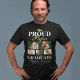 Abschluss Großeltern T - Shirt mit einem Absolventen-Mortarboard, 5 Fotos Ihres Enkelkindes, das Sprichwort "stolze Papa des Absolventen", ihren Namen, Studienort und Jahrgang.