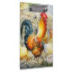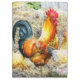 Ein Barkeeper-Hahn, der von einem Bienenstock seiner Dame gerahmt ist, hennt und heut sich um ihn herum. Die sanften Gelbtöne und Grautöne bringen den farbenfrohen Hahn ins Zentrum der Aufmerksamkeit, genau dort, wo der stolze Vogel gerne ist. Dies ist ein Mischmedium, das in Ölpastellfarben und farbigem Bleistift zeichne. von Amanda Diehl, Paxdomino Designs
