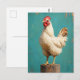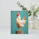 Ein charmantes rustikales Ölgemälde mit einem stolzen, stehenden Hühnchen auf einem verwitterten Holzstumpf. Set vor einem türkisfarbenen Hintergrund mit Orangetönen, strahlt dieses Kunstwerk den Charme eines Bauernhauses und Vintagen Charakter aus.