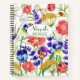 Personalisierter Name und Text, großes Spiralheft mit hellen und fröhlichen Aquarellbildern von Schmetterlingen, Ladybugs und Blume im Feld: Lavendel, Stiefmütterchen, Mohn und vieles mehr.