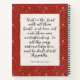 Dieses Landesbild zeichnet sich durch eine lebhafte rote Kulisse aus, die mit feinen weißen Blume und botanischen Stoffen geschmückt ist. Im Mittelpunkt des Kunstwerks steht der aufregende Bibelvers aus den Sprichwörtern 3:5-6 KJV (King James Version), der wunderschön geschrieben wurde, um Kraft und Beruhigung inspirieren. Ideal für ein gemütliches Wohnzimmer, eine ruhige Gebetsecke, eine Bibelstudienzertiärerei, sie dient als tägliche Erinnerung göttlicher Führung und Unterstützung.