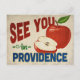 Eine bezaubernde Providence Rhode Island Reisepostkarte mit einem hübschen roten Apfel, zusammen mit einem lustigen Retro-Text, der sagt: "See you in Providence"