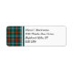 Rücksendeadressen-Aufkleber mit der Provinz Manitoba Tartan, adoptiert 1962. Traditionelles kariertes Muster in Flaschengrün, Rot und Gold, mit hellblauen Highlights.