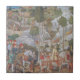 Prozession der Weisen durch Gozzoli circa Fliese 1459, klein. Eins von Benozzo Gozzolis berühmtesten Freskos in Florenz, Italien. Eine Prozession der Leute in den roten Hüten und Renaissancetracht folgen den Weisen, die dem Christus-Kind Geschenke holen. Hügel mit Tieren und Vögeln punktieren die ausführliche Landschaft im Hintergrund. Im Abstand ist ein Schloss. Ein reizendes Geschenk für Weihnachten. Italienische Kunst-Wiedergabe. Palacio Medici Ricordi, Florenz.