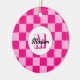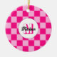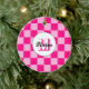 Schachtellichtes, heiß rosa geometrisches Retro Monogram Weihnachtsschmuck. Schachte Quadrate geometrische Retromuster Muster Urlaub Geschenk für sie. Vintages Kacheln heiß rosa modernes Schachbrett. Personalisieren Sie Ihre individuelle Eingabe und Ihren eigenen Namen.