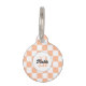 Kontroller pfirsichweißer geometrischer Retro Monogram Pet ID tag. Geschenkte Quadrate geometrisches Retromuster Geschenk für Hunde. Cooles geometrisches rechteckiges Muster in Retro. Vintages Fliesenpfirsich weißes modernes Schachbrett. Personalisieren Sie Ihre persönlichen Daten mit dem Namen und den Kontaktinformationen Ihres Haustiers.