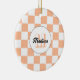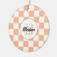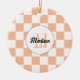 Schachte pfirsichweiße geometrische Retro Monogram Weihnachtsschmuck. Schachte Quadrate geometrische Retromuster Muster Urlaub Geschenk für sie. Vintages Fliesenpfirsich weißes modernes Schachbrett. Personalisieren Sie Ihre individuelle Eingabe und Ihren eigenen Namen.