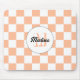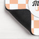 Geprüfter pfirsichweißer geometrischer Retro-Monogram-Maus-Pad. Schachte Quadrate geometrische Retromuster Geschenk für sie. Cooles geometrisches rechteckiges Muster in Retro. Vintages Fliesenpfirsich weißes modernes Schachbrett. Personalisieren Sie Ihre individuelle Eingabe und Ihren eigenen Namen.